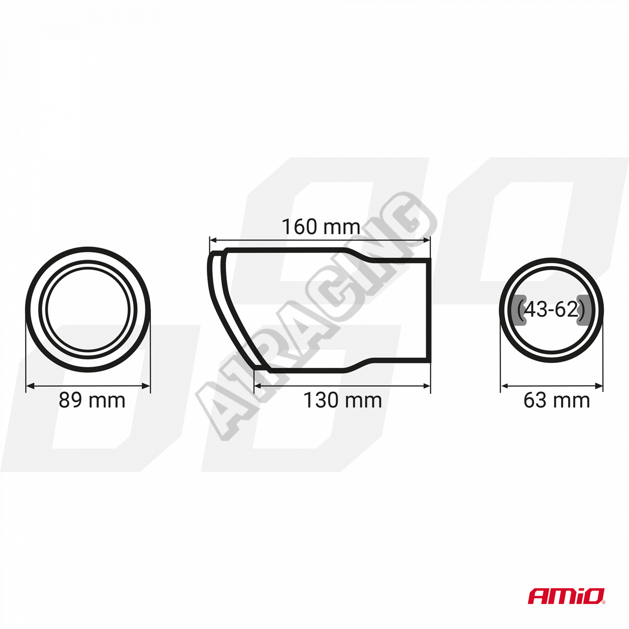 Koncovka výfuku je určena k montáži jako doplňkový prvek auta, který mu dodává závodní vzhled a charakter. Koncovka má upínací svorku, která umožňuje montáž bez nutnosti svařování.