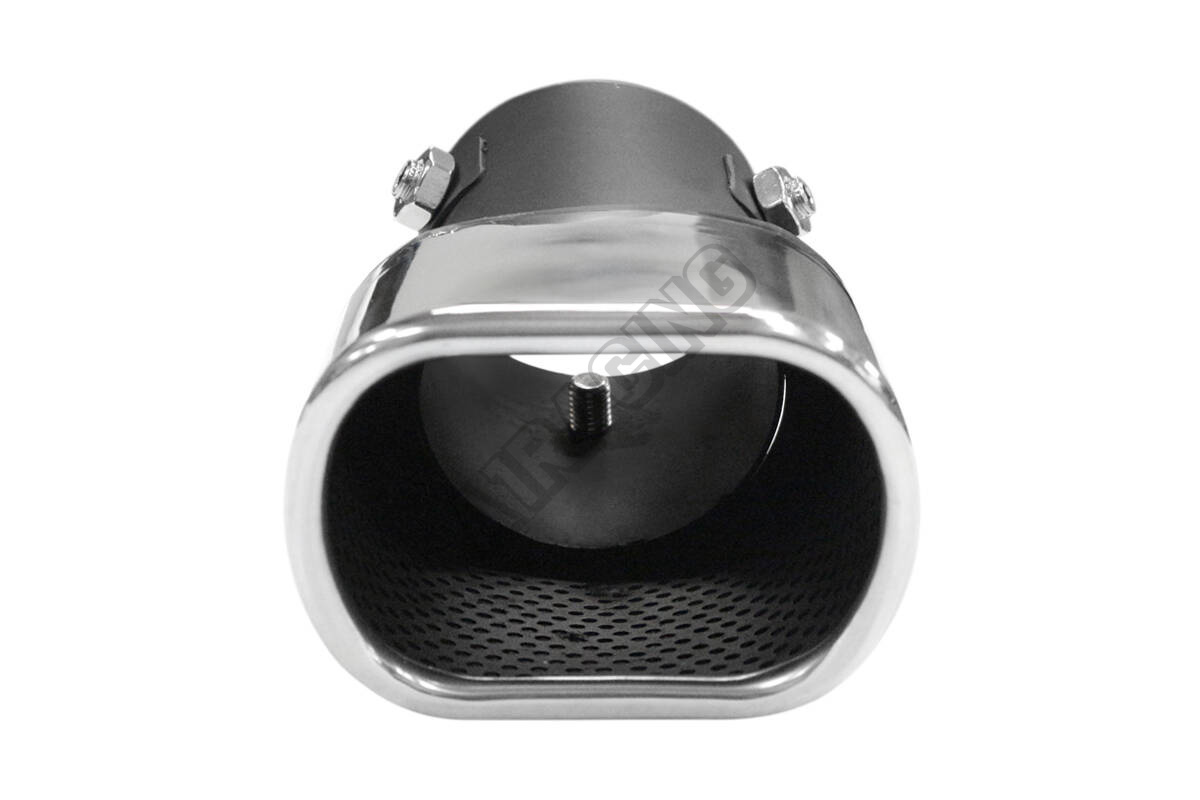 Nerez koncovka výfuku oválná 90x70 mm mírně šikmá Určeno pro nasazení pro průměry potrubí 35-60 mm,