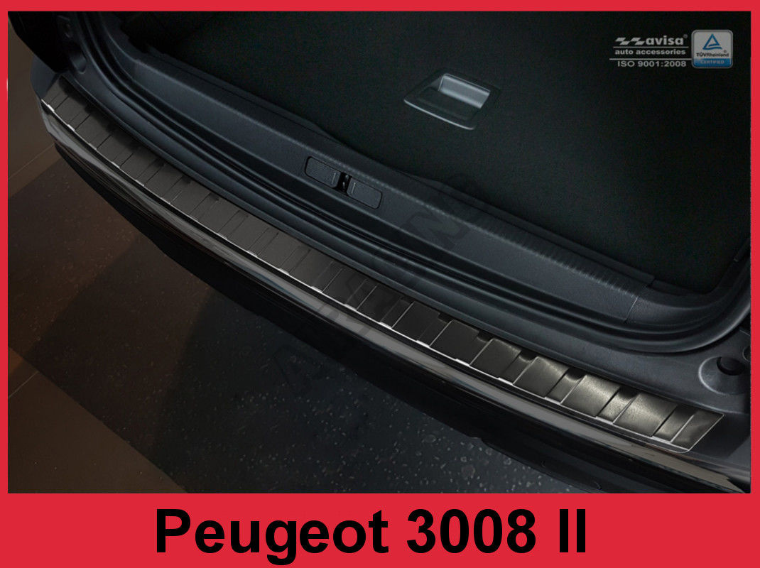 Nerez kryt-černá ochrana prahu zadního nárazníku Peugeot 3008 II 2016-17 Tento nerez kryt zadního n