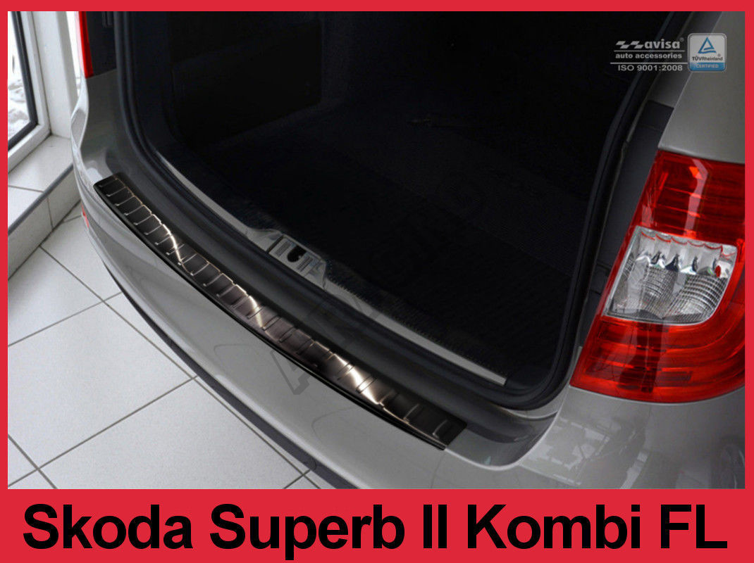 Nerez kryt- černá ochrana prahu zadního nárazníku Škoda Superb II kombi FL 2013-15 Tento nerez kryt