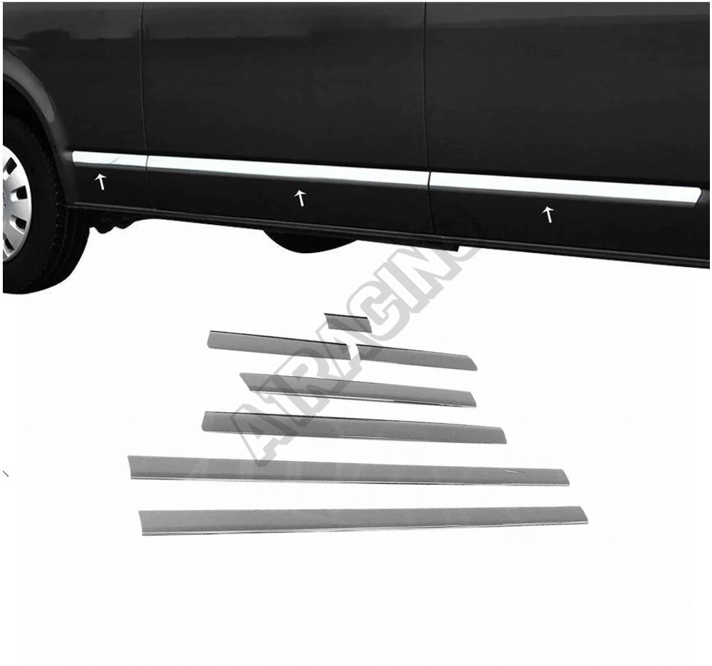 Nerez kryty bočních dveří Omtec VW Transporter T5, T6 dlouhý leštěné 7 ks