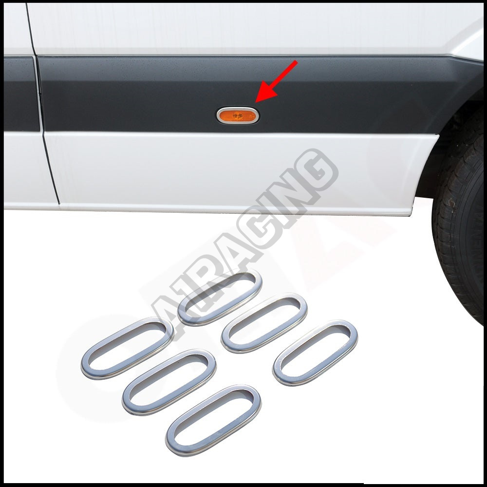 Nerez kryty bočních výstražných světel Omtec MB Sprinter, VW Crafter 2006-18 (6 ks) - 100% nerez le