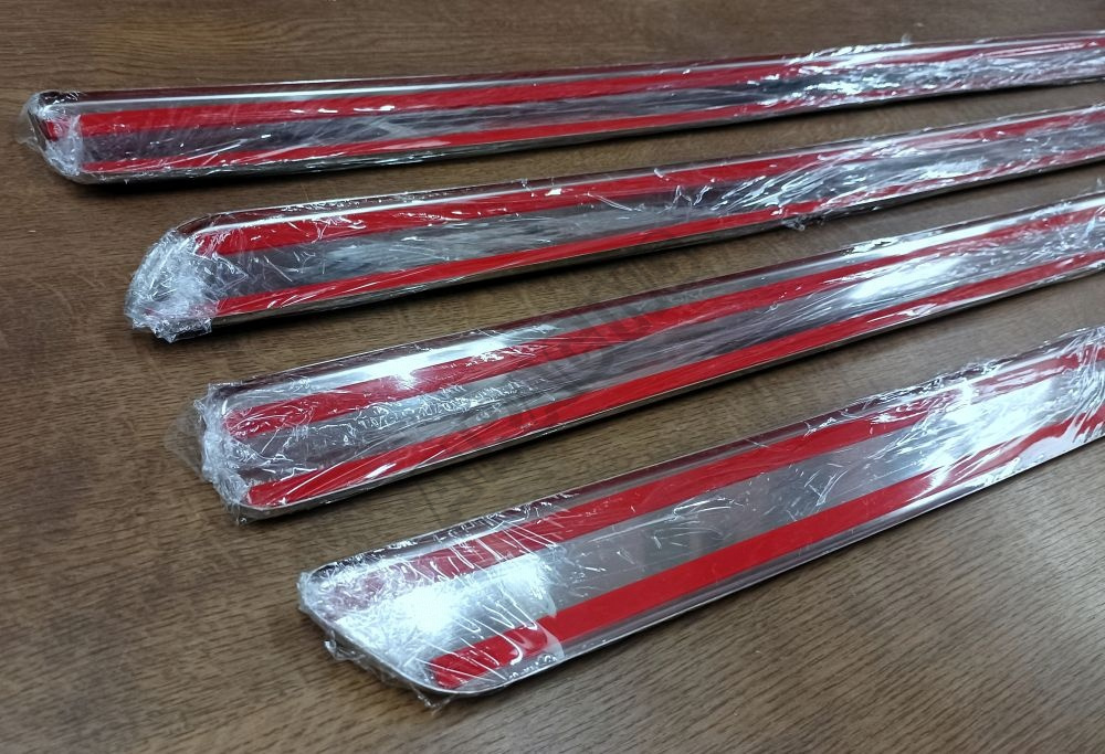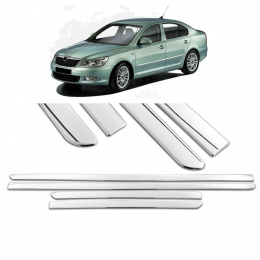 Nerez leštěné boční lišty dveří 4 ks s podlepením Škoda Octavia II 2004-13 (sedan i kombi)
