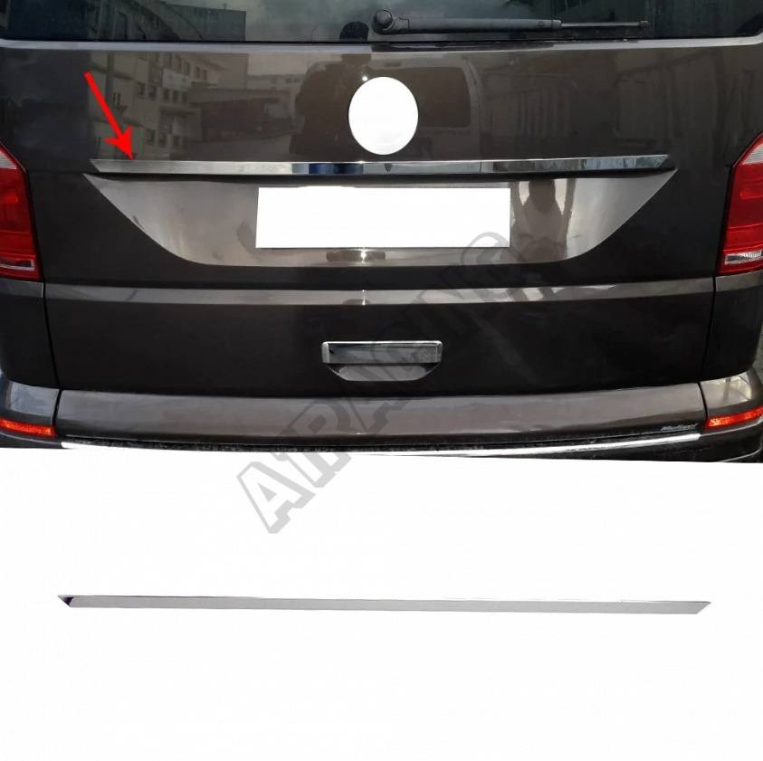 Nerez lišta nad SPZ VW T6 - verze pro VÝKLOPNÉ DVEŘE - nerez provedení leštěné - přesně tvarovan