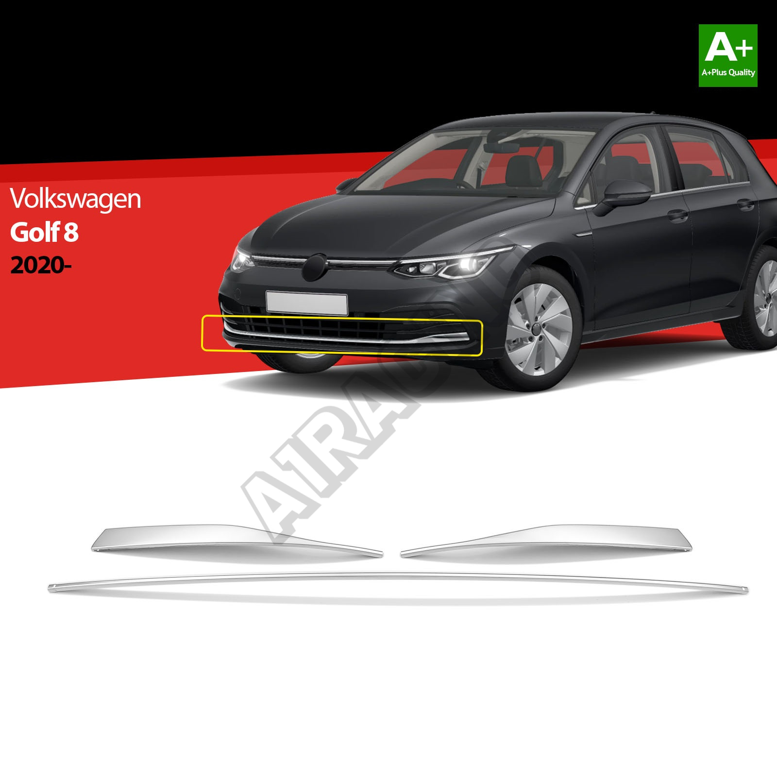Recenze k produktu Nerez lišty předního nárazníku VW Golf 8 2020+ 3 ks