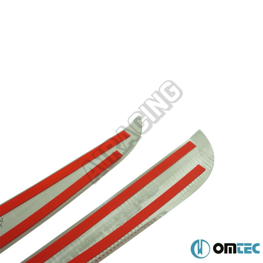 Pozor : Každý tento díl se musí lepit aspoň při teplotě 10 °C, kde před instalací musí být lepená část naprosto čistá a suchá, aby vnitřní polep se perfektně uchytil. Pokud chcete maximalizovat uchycení. Můžete na několika místech bodově přidat 2-složkové lepidlo. Výsledkem bude pevné spojení, které už nepovolí - ale není to podmínkou, dobře očištěný a nalepený díl jen na oboustranné pásky jde velmi těžko sundat. Proto je dobré hned na poprvé daný díl dobře přesně nasadit.
