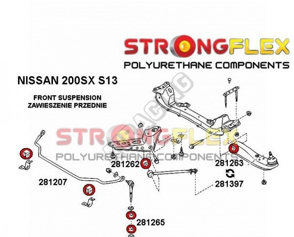 0 recenze produktu Nissan 200SX S13 1988-93 StrongFlex sestava silentbloků pro přední a zadní nápravu 33 ks
