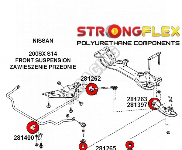 Nissan 200SX S14 1994-99 StrongFlex Sport sestava silentbloků jen pro přední nápravu 10 ks obsahuje: