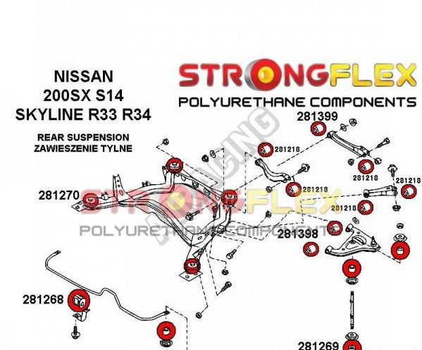 Nissan 200SX S14 1994-99 StrongFlex kompletní sestava silentbloků 33 ks Tvrdší silentbloky dodá vaš