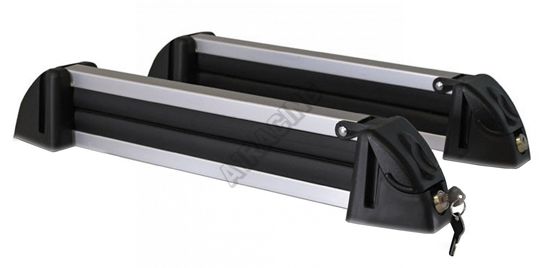 Sada 2ks střešních nosičů na 4 páry lyží (nebo 2x snowboard). Snadná a rychlá montáž na většinu typů příčných nosičů do maximální šířky 60mm.