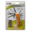 Multifunkční nůž z aluminia žluto-zlaté barvy, s nástroji z nožířské oceli. Užitečný pomocník Multi pro camping, rybaření a další outdoor využití.