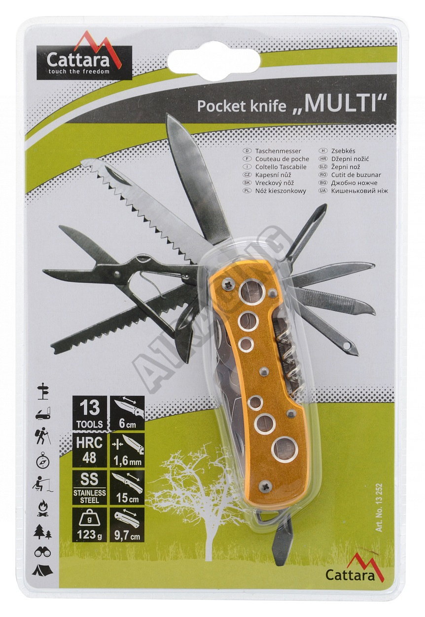 Rukojeť je kvalitně zpracována z aluminia, barveného žlutou až zlatavou barvou s perforací vrchní i spodní strany. Nožík díky svým funkcím, najde uplatnění opravdu všude a je dobré ho mít při ruce kdykoliv a kdekoliv.