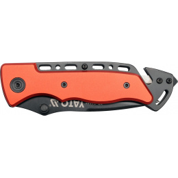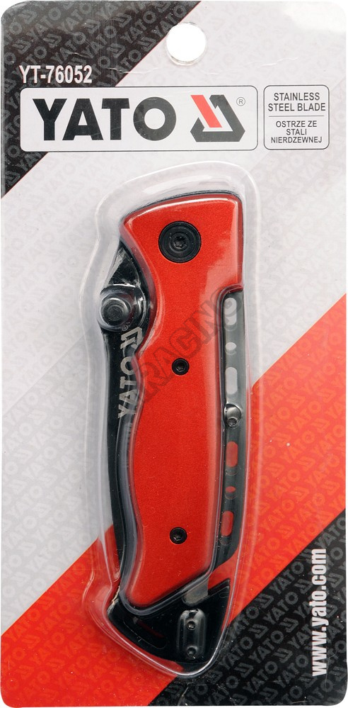 Nůž je určen především pro milovníky nožů a fandy značky Yato. Čepel délky 95 mm je zhotovena z kvalitní nerezové oceli, lakované do matné, černé barvy a je navíc vybavena ozubením na konci ostří. Tvar čepele „drop point“ je nejuniverzálnější lovecká čepel, je vhodná pro porcování masa i stahování kůže, ale díky snížené špičce, lze využít i k bodání.
