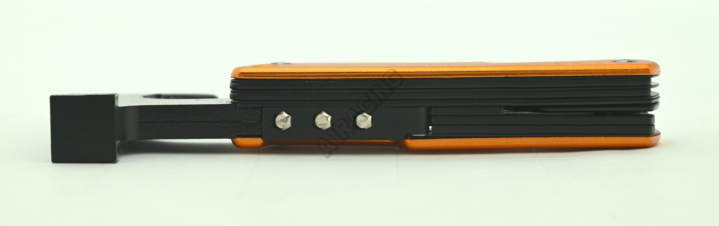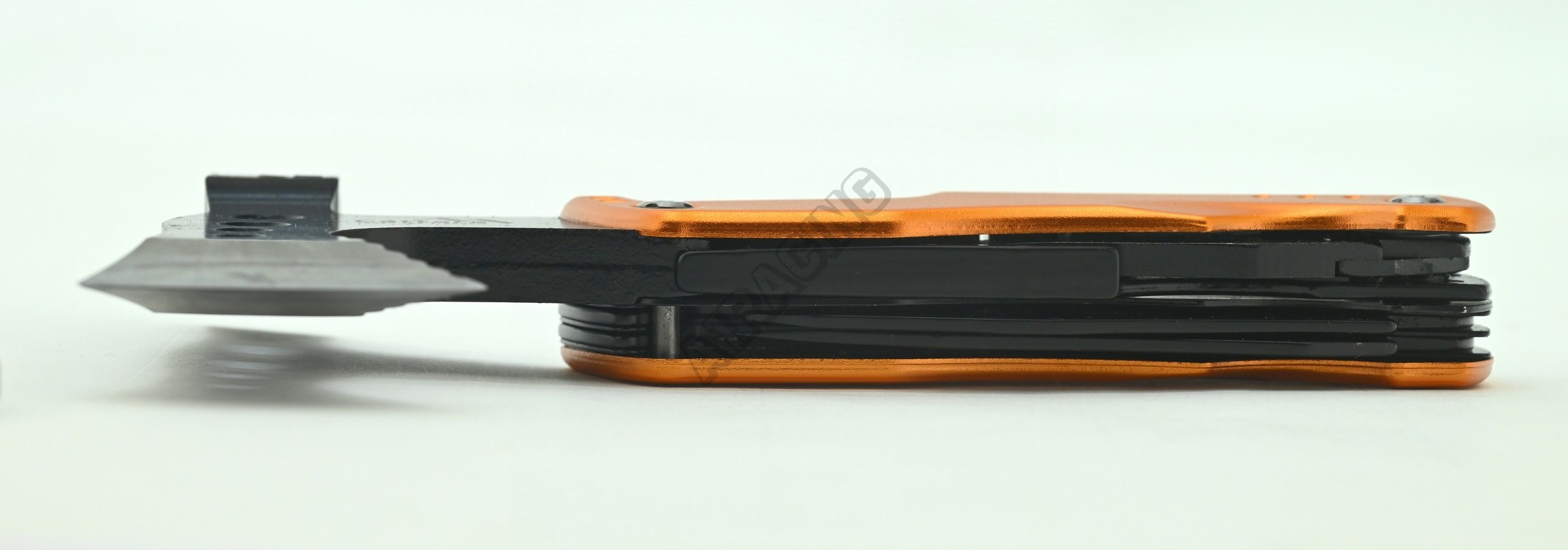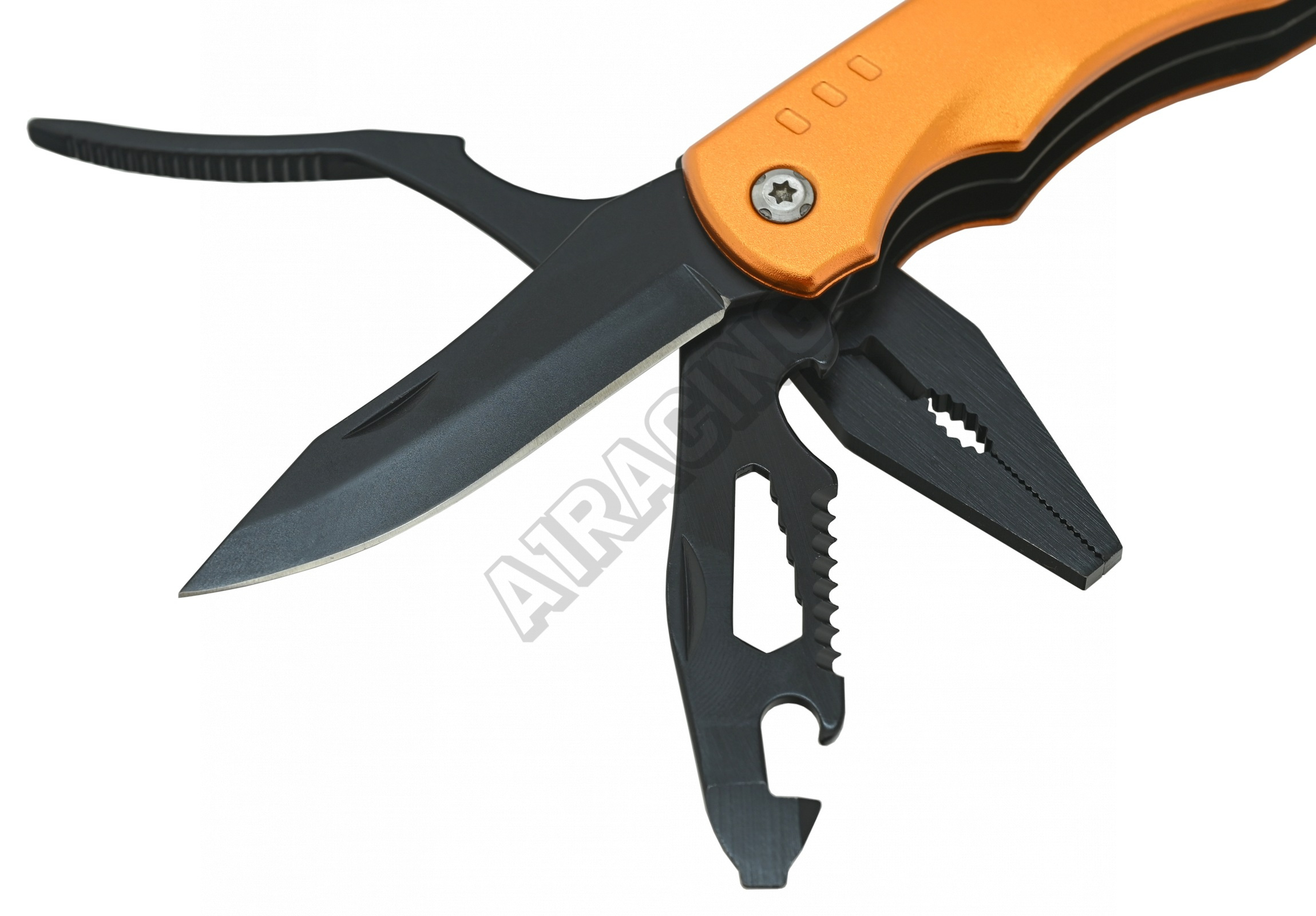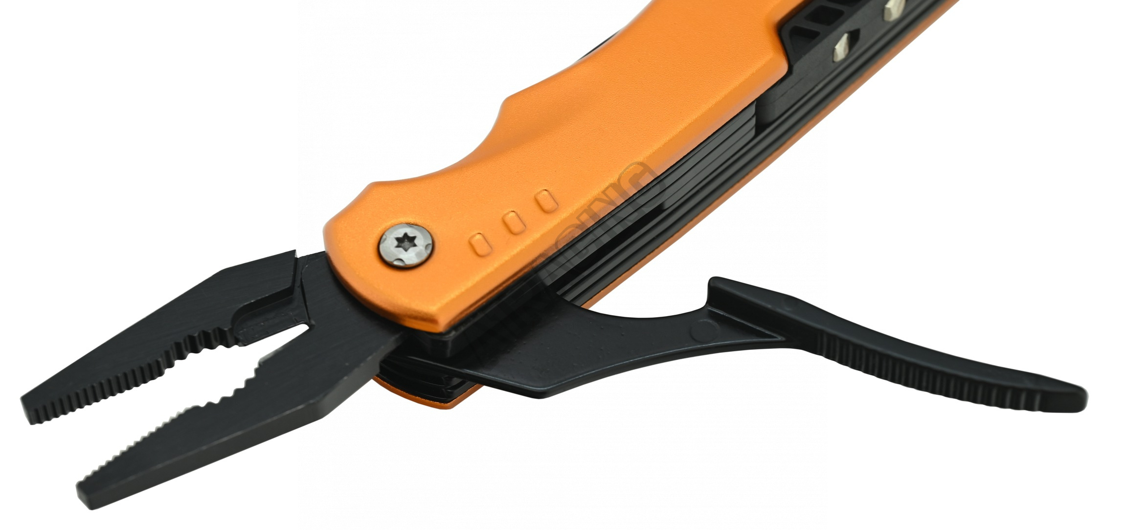 Hlavní nástroj je sekerka (se zakrytým ostřím), kladívko a čelní část doplněná držákem bitů. Vnitřní strana sekerky je navíc doplněná o zdrsněnou část. Samotné bity (plochý, křížový Ph a Pz) jsou uschovány ve výklopném zásobníku na vrchní straně. Ve spodní části lze tahem vyklopit kombinované kleště (štípácí a ozubené čelisti), nůž s čepelí délky 7,5 cm a multifunkční čepel s otvírákem konzerv, otvírákem víček lahví, pilkou, plochým šroubovákem, malým bočním ostřím a klíčem na matice.