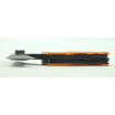 Multifunkční nůž/sekerka s hliníkovými střenkami žluto-zlaté barvy, je užitečný pomocník pro camping, rybaření a další outdoor využití.