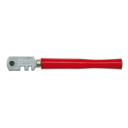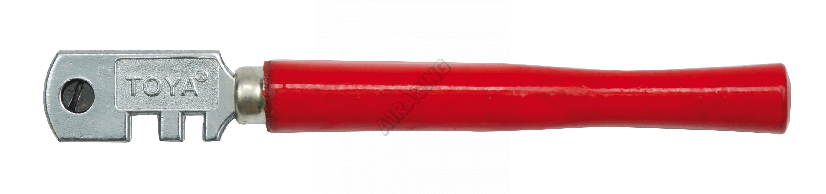 Nůž na sklo vybavený pohyblivou hlavou se šesti řezacími koly.Výrobek má dřevěnou rukojeť a hlavu vy