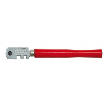 Výrobek má dřevěnou rukojeť a hlavu vybavenou dvěma zářezy, které umožňují uchopení skla při rozbití.