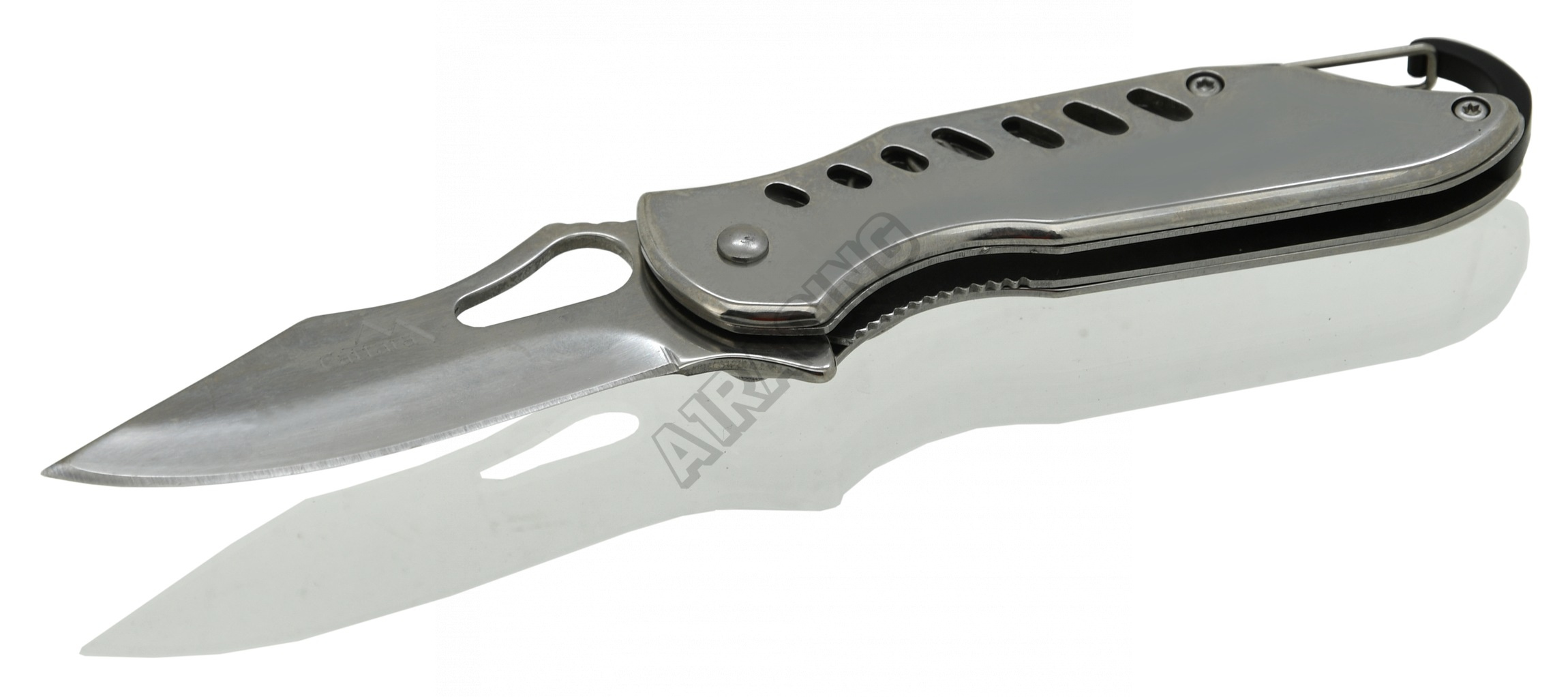 Rukojeť s atraktivní perforací obou střenek z oceli SS420 s leštěným kovovým vzhledem. Zadní strana je doplněna klipsem k přychycení. Nůž je při držení obzvláště pohodlný.