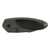 Bezpečnost při práci zajišťuje pojistka, která se pohodlně ovládá bočním posuvem palce ve spodní části rukojeti. Tento mechanismus chrání před nechtěným zavřením nože a přispívá k jeho bezpečnému používání.