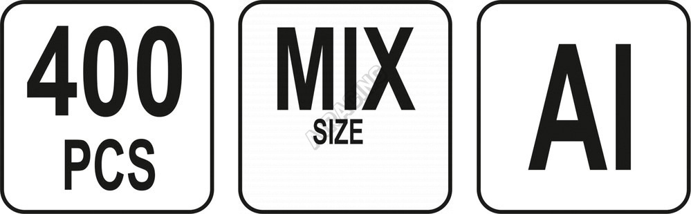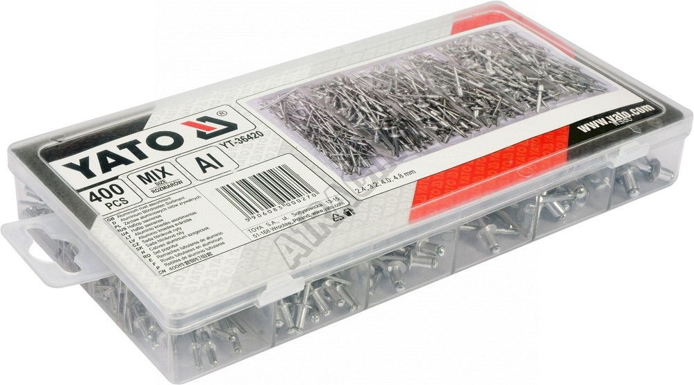 Sada 400 kusů hliníkových nýtů. Sada obsahuje nýty nejčastěji používaných rozměrů. Vše je přehledně