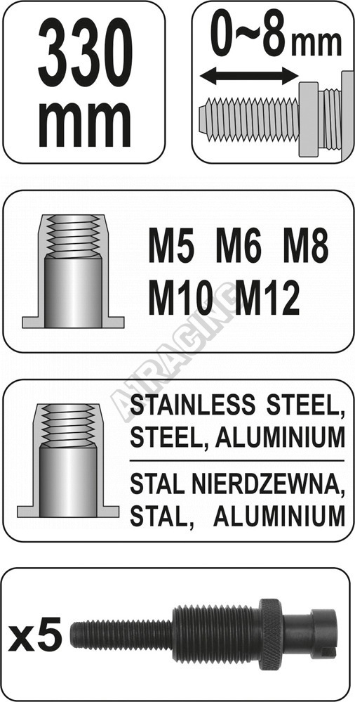 • V příbalu sady maticových nýtů s metrickým závitem M5 / M6 / M8 / M10 / M12