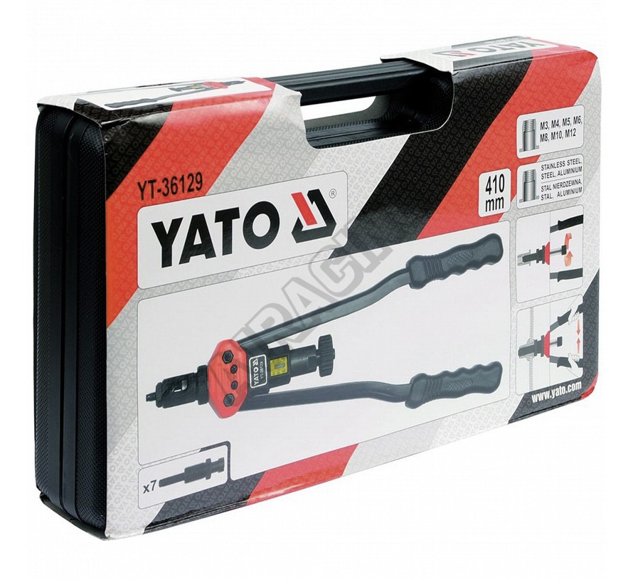 Délka kleští 410 mm, tělo je zhotoveno z hliníku ADC12, rukojeti pak z uhlíkaté oceli. Hlavice jsou precizně zpracovány z 40Cr oceli a jsou určené pro nýty M3 - M12 z nerezové oceli i hliníku.