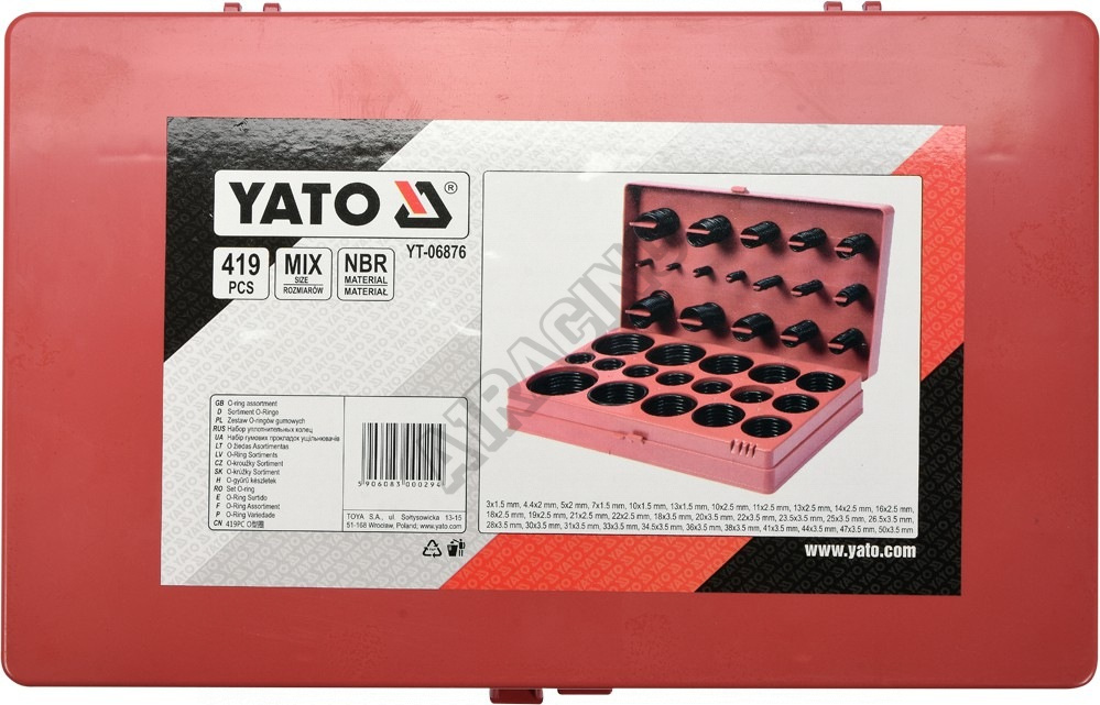 Sada 419 ks o-kroužků zhotovených z kalitní nitrilové gumy (NBR). Veškeré o-kroužky jsou úhledně usp