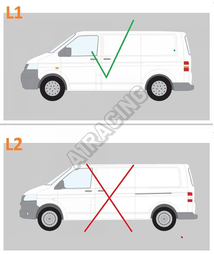 Určeno pro Volkswagen Transporter T5 s krátkým rozvorem L1 (SWB). Není vhodné pro verze L2 (dlouhý rozvor) viz foto v příloze.