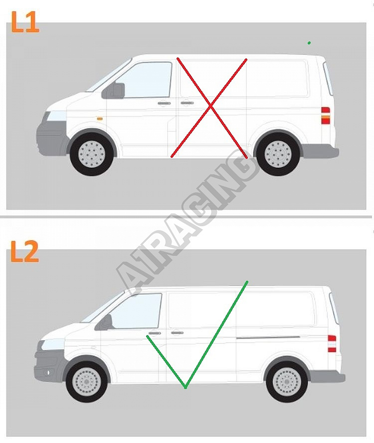 Určeno pro Volkswagen Transporter T5 s delším rozvorem L2. Není vhodné pro verze L1 (krátký rozvor) viz foto v příloze.