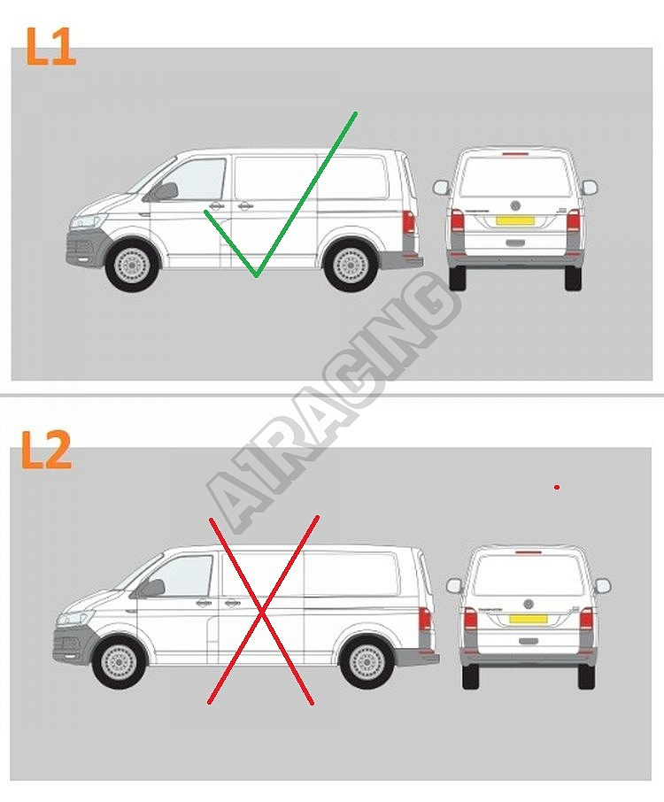 Určeno pro Volkswagen Transporter T6 s krátkým rozvorem L1 (SWB). Není vhodné pro verze L2 (dlouhý rozvor). Určeno jen pro T6 před facelift 2015-19 (nepasuje pro T6 facelift 2019+) viz foto v příloze