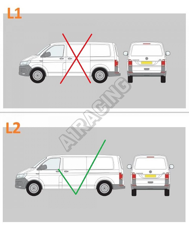 Určeno pro Volkswagen Transporter T6 s delším rozvorem L2 ( ne long nebo extra long). Není vhodné pro verze L2 (dlouhý rozvor). Určeno jen pro T6 před facelift 2015-19 (nepasuje pro T6 facelift 2019+) viz foto v příloze