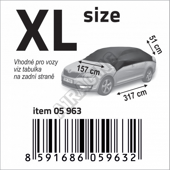 Ochranná plachta nylon XL 317x157x51 cm Prodyšná plachta na horní část automobilu. Optimálně zabraň