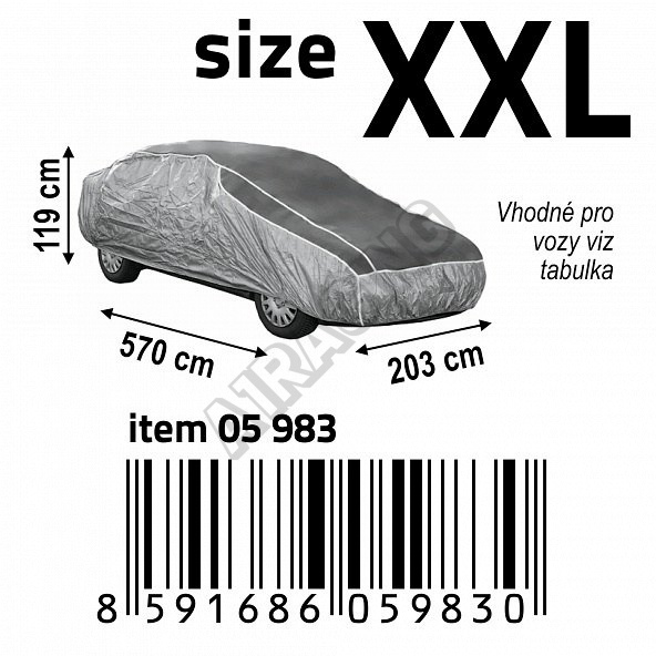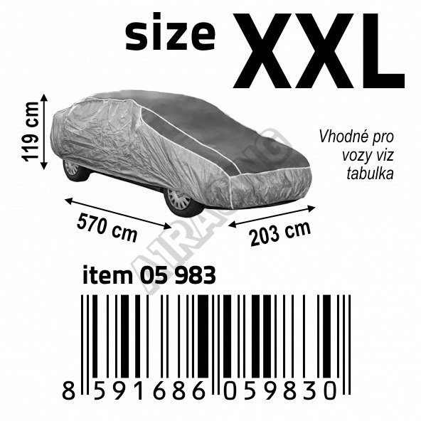 | velikost XXL (570×203×119cm) - vhodné pro vozy: | |