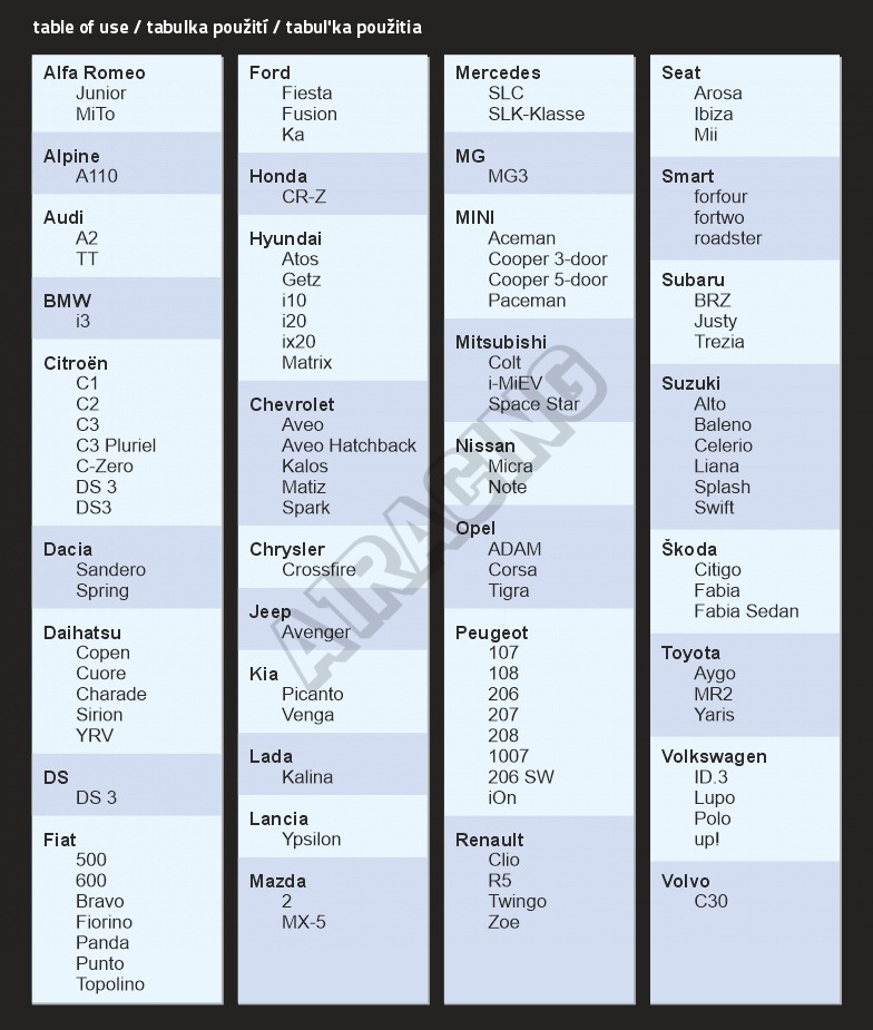 | Škoda | Citigo, Fabia, Fabia Sedan |