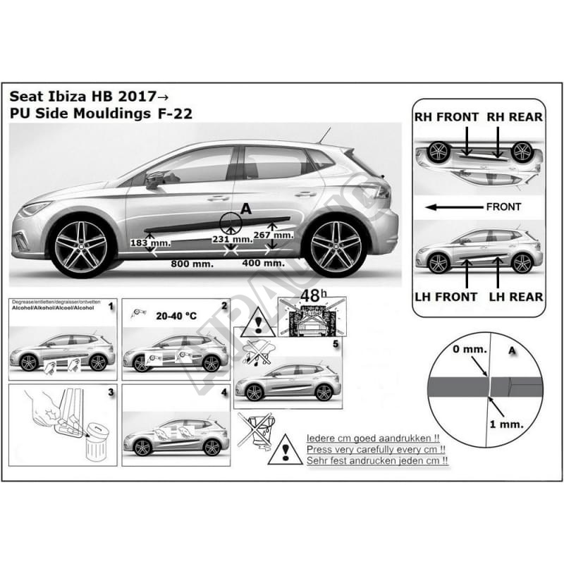Ochranné boční lišty na dveře, Seat Ibiza V, 2017+, HTB přesně na míru pro váš vůz vyrobeny dle sou