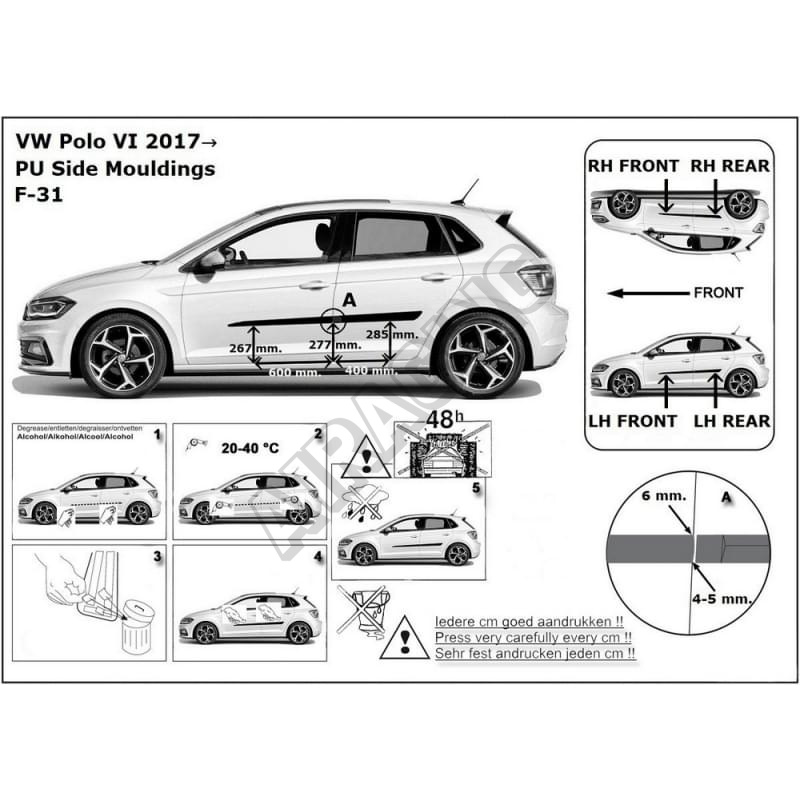 Ochranné boční lišty na dveře, VW Polo VI, 2017+, HTB, 5-dvéřové přesně na míru pro váš vůz vyroben