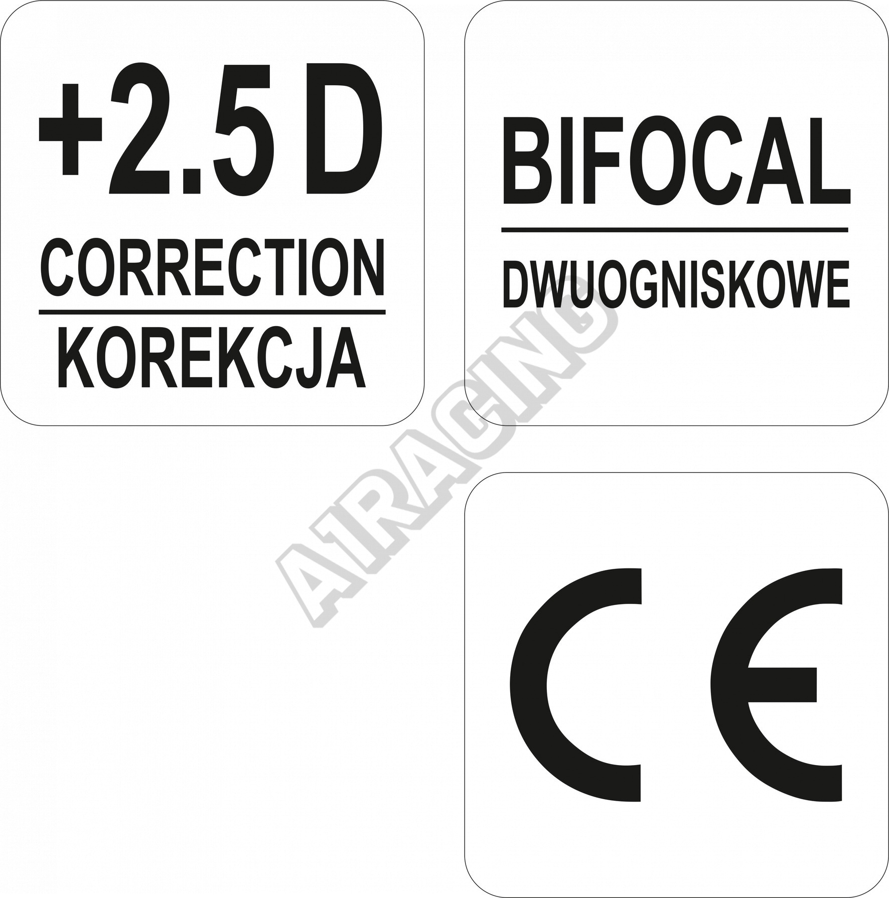 Ochranné brýle YT-73614 se zvětšovacími čočkami jsou určeny k ochraně očí při manuální a mechanické práci, např. Při broušení, vrtání, sekání atd.