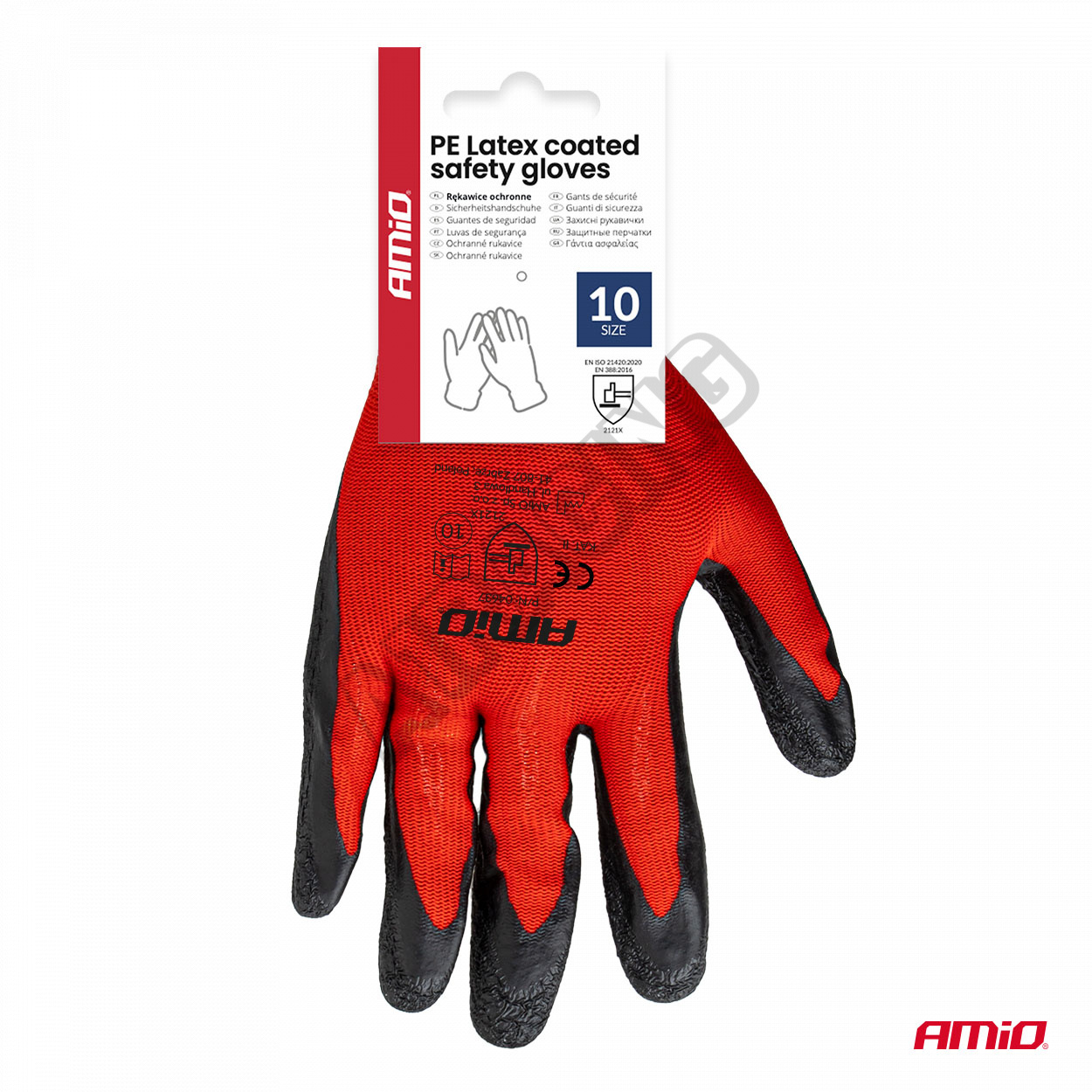 Ochranné polyesterové rukavice potažené latexem velikost 10 2121X 4ks. AMIO-04637