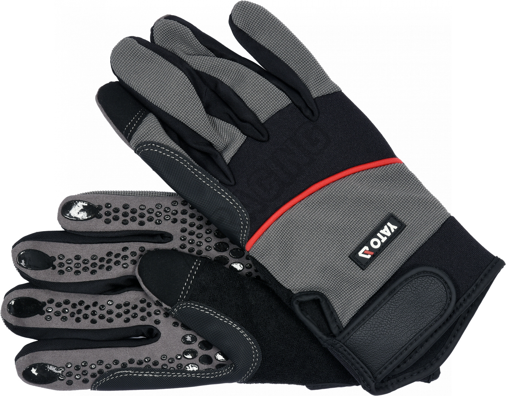 Pracovní rukavice vyrobené z umělé kůže a spandex.