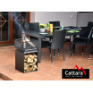 Přenosné ohniště na dřevo CUBE, s čtvercovou konstrukcí a úložným prostorem na dříví, vhodné na terasy a zahrady.