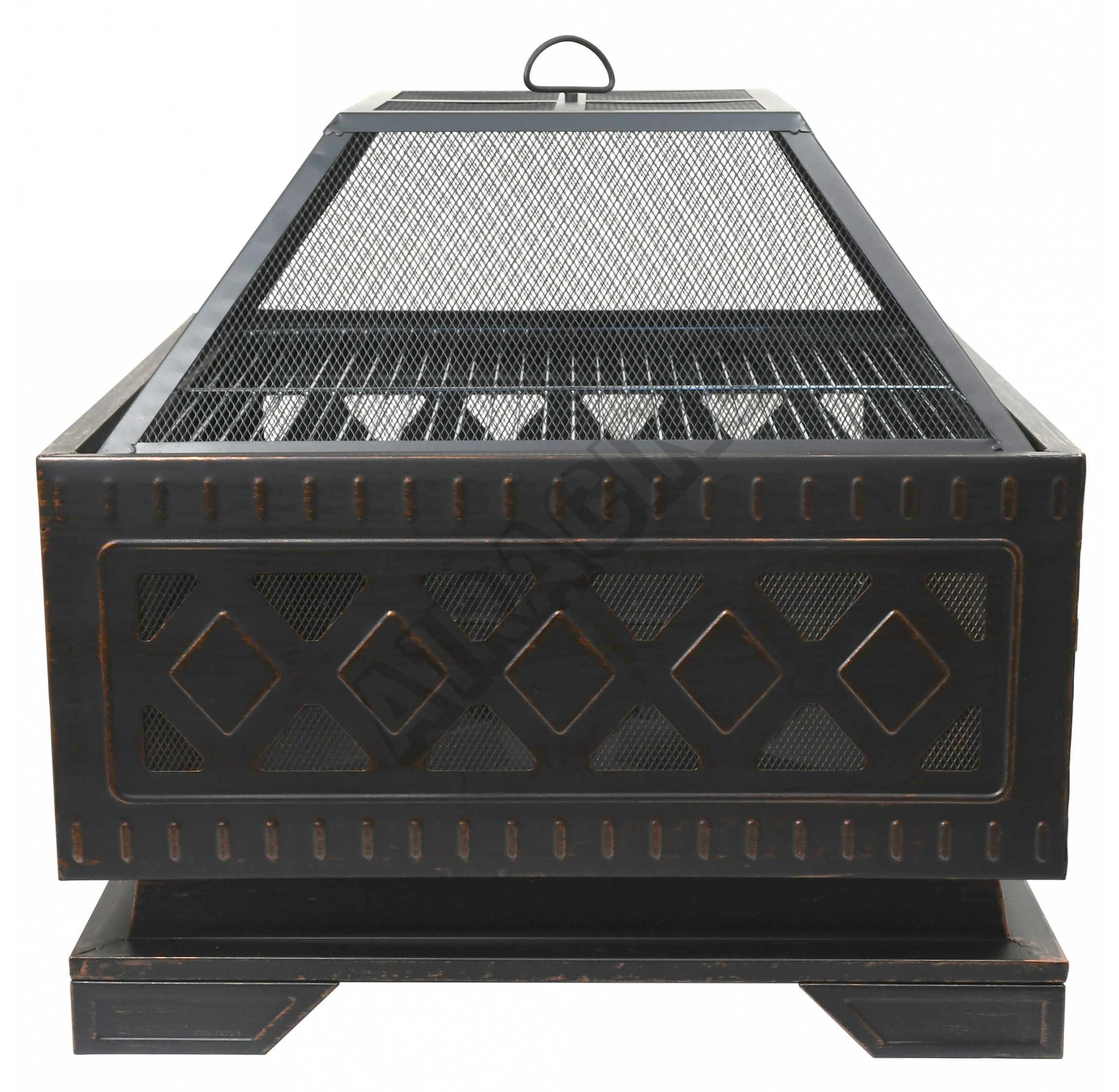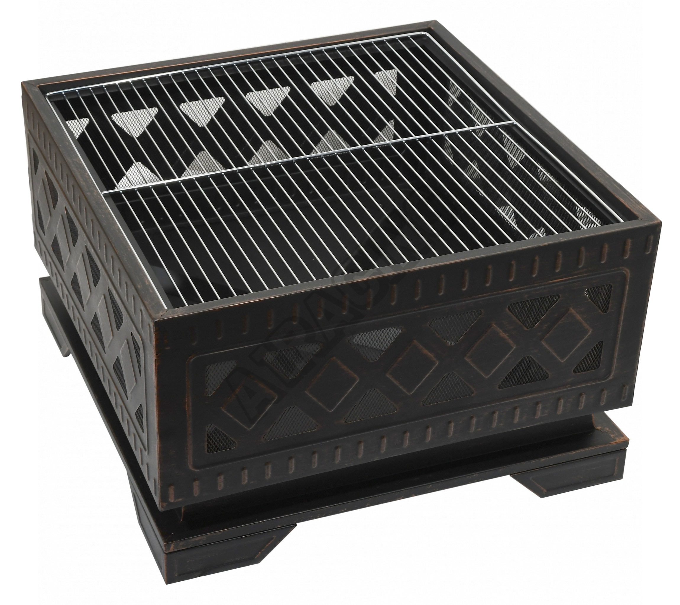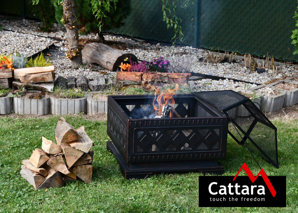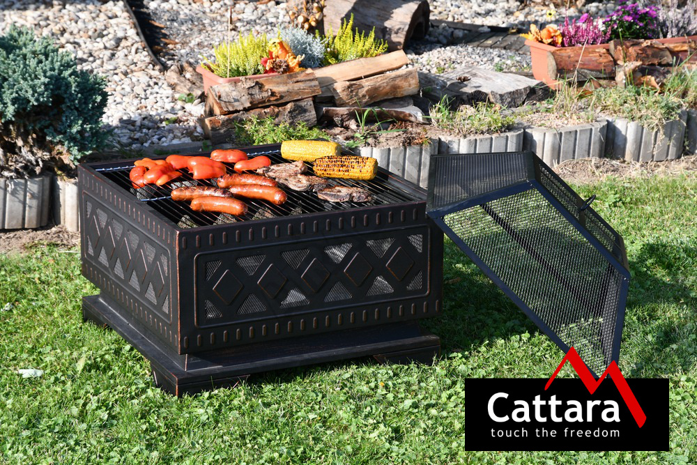 Konstrukce ohniště je vyrobena z kvalitní oceli s vysokoteplotním černým/měděným nátěrem s patinou. Pro grilování je ohniště opatřeno ocelovým roštem o rozměrech 58x58 cm.