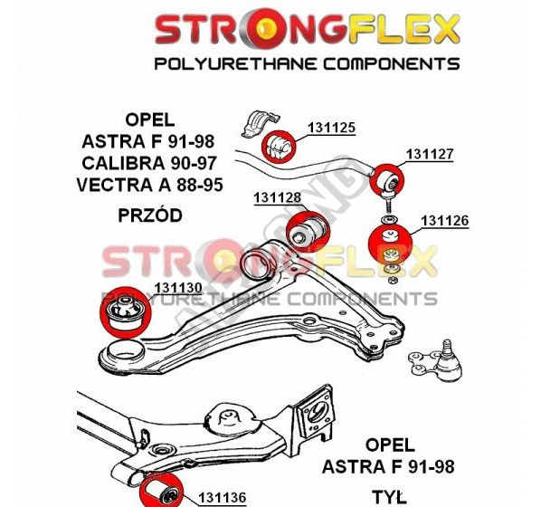Opel Astra F StrongFlex (tvrdost 80ShA) kompletní sestava silentbloků na celé auto obsahuje :