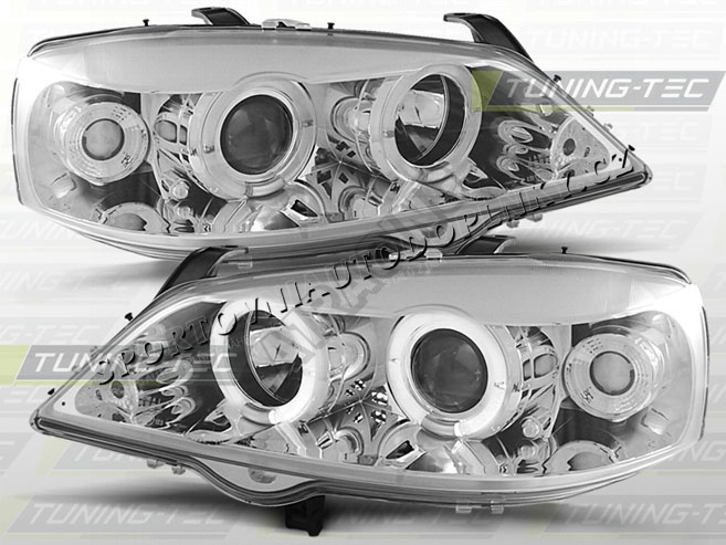 OPEL ASTRA G 1997-04 PŘEDNÍ ČÍRÁ SVĚTLA ANGEL EYES CHROME