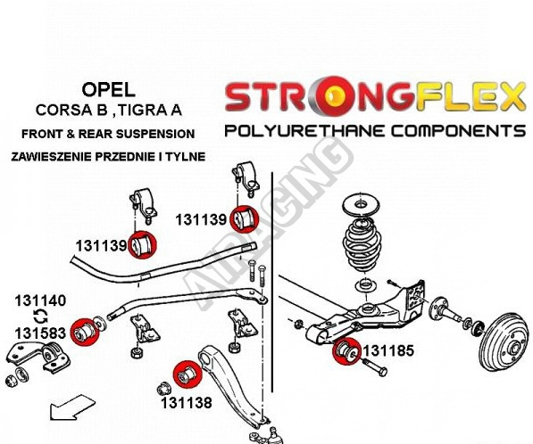 Opel Corsa B StrongFlex sestava silentbloků pro přední a zadní nápravu 10 ks obsahuje:
