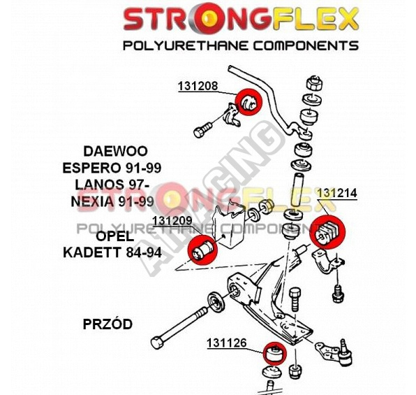 Opel Kadett E StrongFlex Sport sestava silentbloků jen pro přední nápravu 10 ks obsahuje: