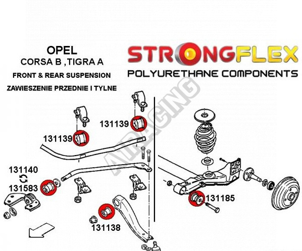 Opel Tigra A StrongFlex Sport sestava silentbloků jen pro přední nápravu 8 ks obsahuje: