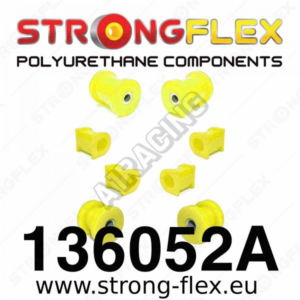 Tvrdší silentbloky dodá vašemu autu lepší kontrolu i jízdní stabilitu hlavně při průjezdech v zatáčkách. Firma StrongFlex vyrábí tyto komponenty z kvalitnějších materiálů než jsou z prvovýroby, dodává 2 tvrdosti a to základní červenou 80 ShA, která je o něco tvrdší než oem provedení a potom žlutou sport o tvrdosti 90 ShA, která se už hodí spíše pro sportovní účely. V galerii fotek je vidět použití jednotlivých silentbloků