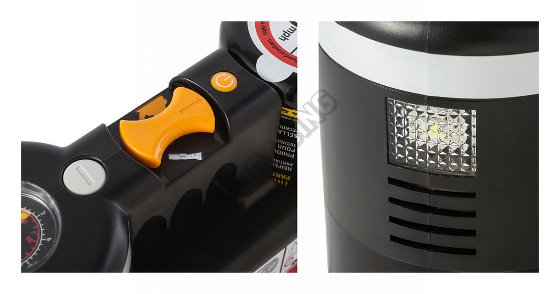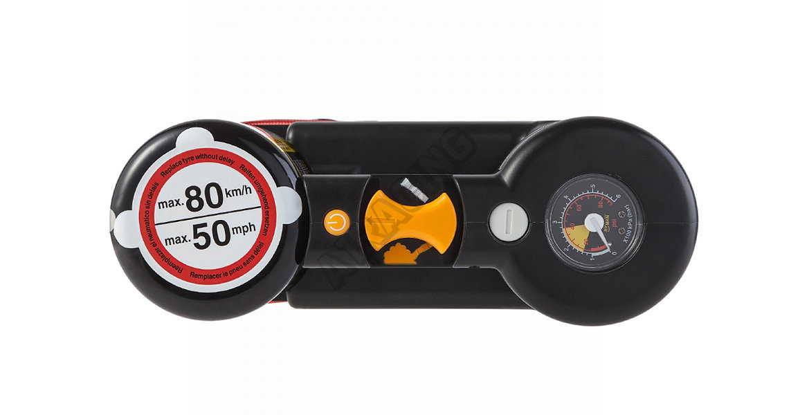 Kompresor a těsnící hmota efektivně utěsní nejčastější typické průrazy pneumatiky do 6 mm. Můžete jet až 200 km (160 mil) maximální rychlostí 80 km/h (50 m/h) na utěsněné pneumatice, až do nejbližšího pneuservisu.