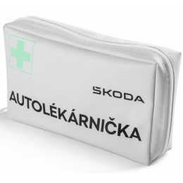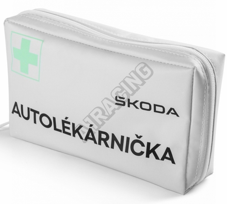 Autolékárnička je umístěna v nepromokavém textilním pouzdře s logem ŠKODA.