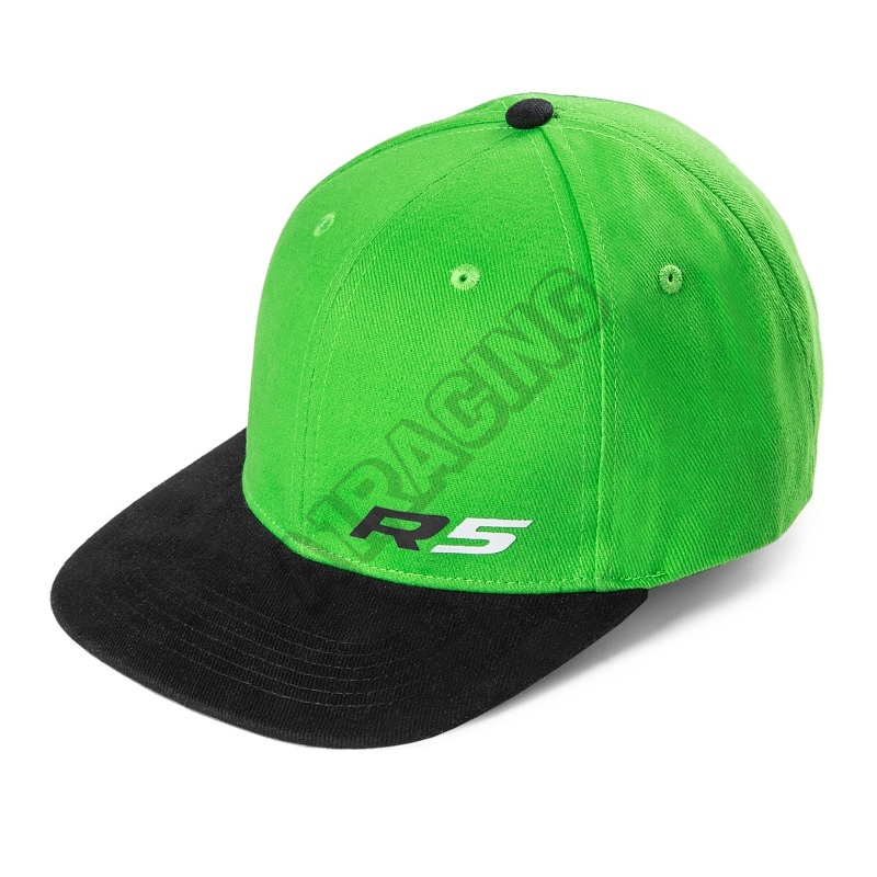 Zelená kšiltovka Motorsport s černým rovným kšiltem má moderní střih, 6 panelů, 3D potiskem "R5" na přední straně vlevo a 3D potisk "ŠKODA Motorsport" vpravo na boku. Černý pásek k regulaci velikosti s kovovou přezkou s vystouplým logem ŠKODA.
